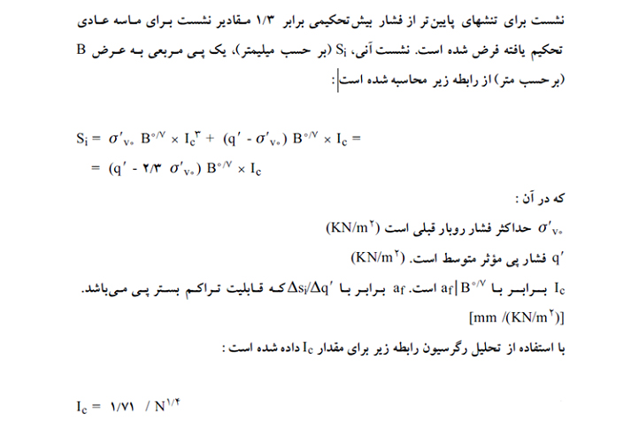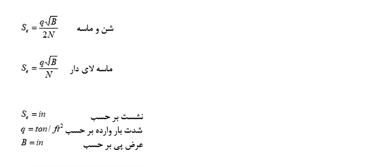 روابط نشست پی های سطحی با عدد نفوذ استاندارد :