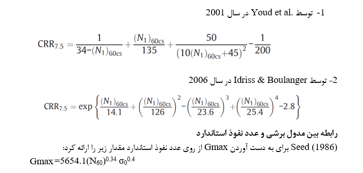 رابطه بین نسبت تنش برشی لرزه ای و عدد نفوذ استاندارد