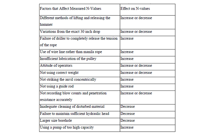 عوامل تاثیر گذار بر مقدار N آزمایش SPT که در اینجا به بعضی ها اشاره شده است: